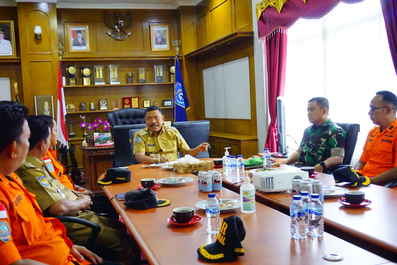Bengkulu Utara, Kawalnews.com -Pemerintah Kabupaten (Pemkab) Bengkulu Utara (BU) Ir H Mian di dampingi Dandim 0423 BU Letkol Inf. Made Mahardika S.H M.IP mengadakan rapat bersama Kepala Kantor Pencarian dan Pertolongan Basarnas M. Arafah S.H M.Si, Kasubsi Operasi d Siaga Tri Agung Prihartanto S.E dan Kaur Umum Kantor Pencarian dan Pertolongan Julyendra S.E dan staf Basarnas Propinsi Bengkulu terkait permintaan kepada Pemerintah Daerah untuk memberikan tanah hibah seluas 1 Hektar, guna Pembangunan Unit Siaga SAR di Enggano, bertempat di ruang Bupati BU, Senin (29/8/2022).