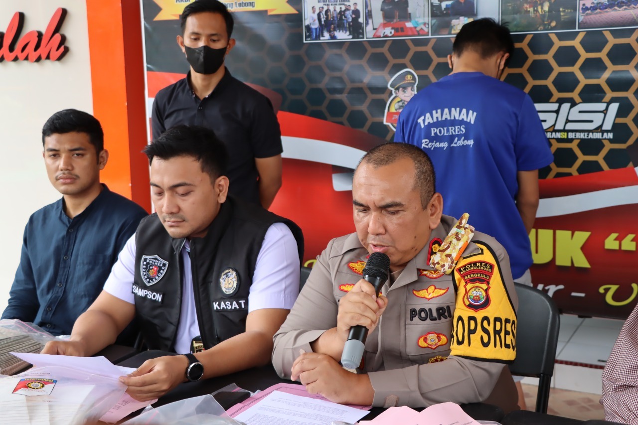 “Informasi awal, diduga rumah Me menjadi tempat pemalsuan surat-surat kendaraan berupa STNK dan BPKB, kemudian setelah kita selidiki, kita dapatkan barang bukti STNK dan BPKB palsu dikediamannya,” terang Kapolres Rejang Lebong Polda Bengkulu AKBP Tonny Kurniawan, saat menyampaikan press release, Rabu (5/10/2022).