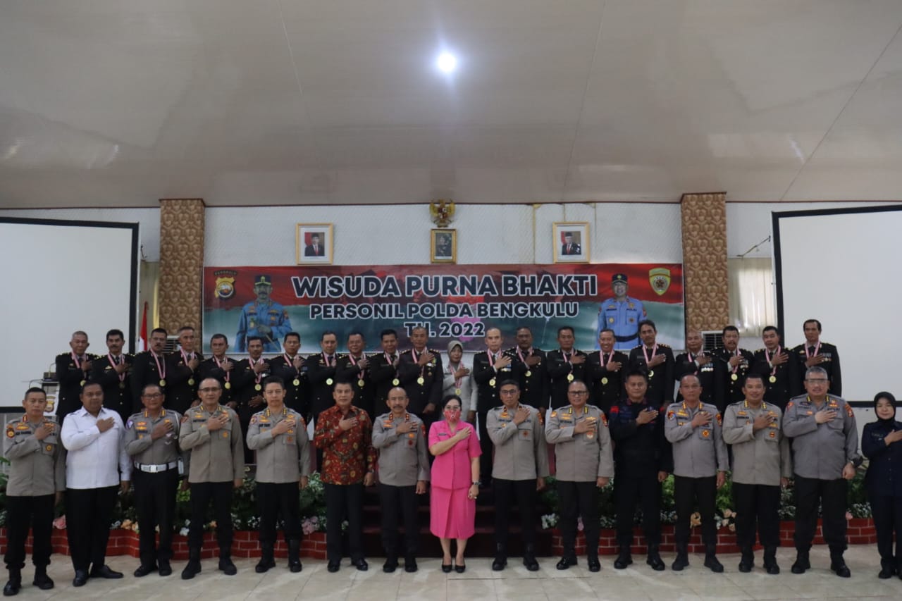 Bengkulu, Kawalnews.com – Bentuk penghargaan terhadap Anggota dan PNS Polri yang memasuki masa pensiun, Biro SDM Polda Bengkulu pagi hari ini Selasa (15/11) menggelar Wisuda Purna Bhakti Bagi Pegawai Negeri Pada Polri (PNPP) Polda Bengkulu T.A. 2022 yang berlangsung di Aula Gedung Adem Polda Bengkulu.