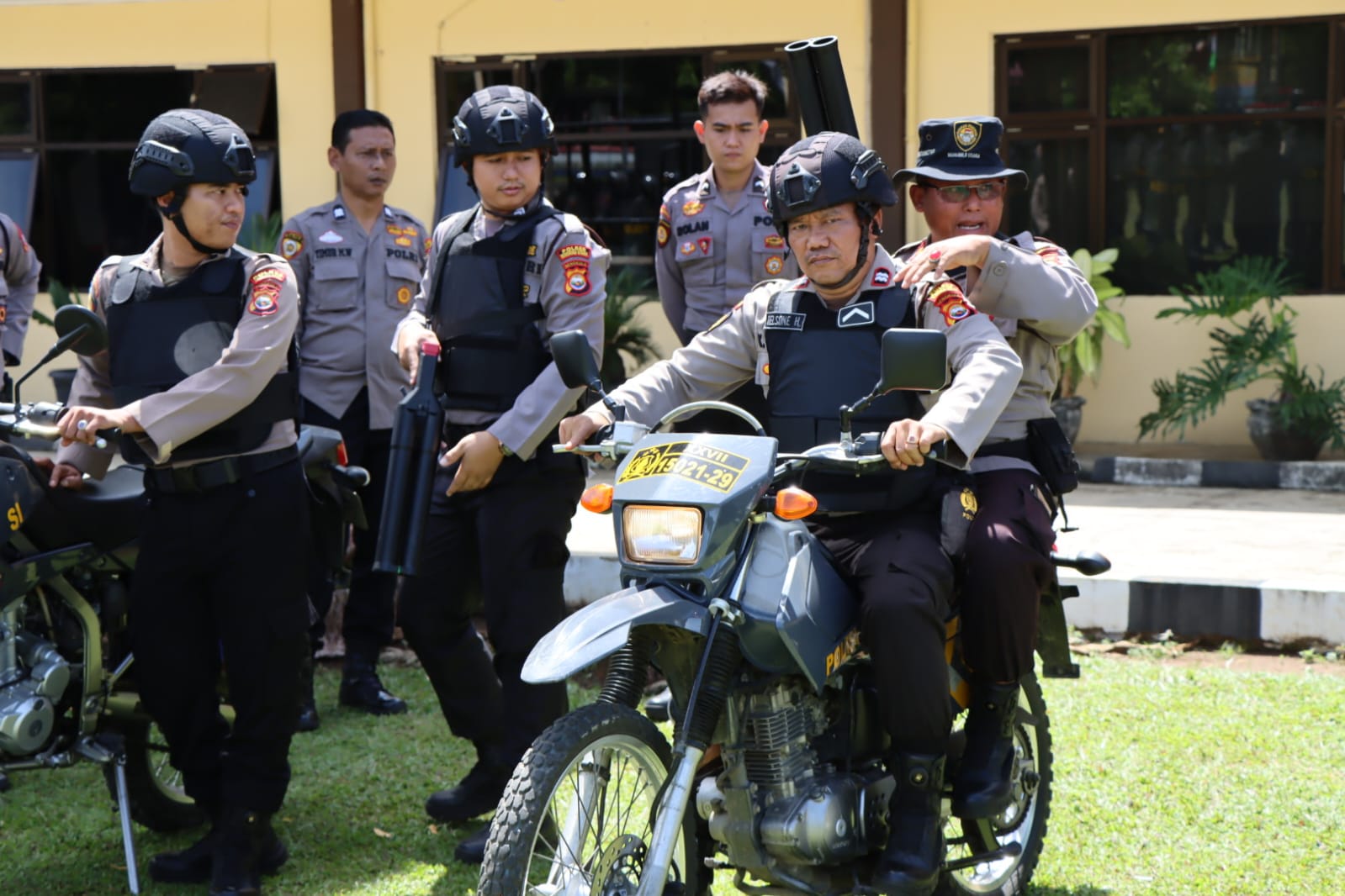 “Para personel antusias, semangat dan fokus mengikuti latihan fisik, teori dasar sikap Dalmas lanjut sebagai sikap di tempat dengan menggunakan perlengkapan Dalmas dan sikap pindah tempat serta formasi Dalmas,” terangnya.