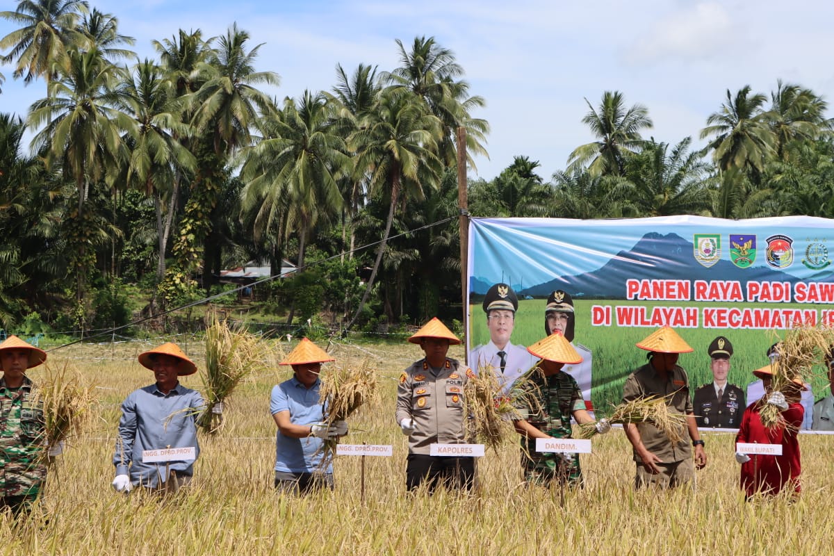 Mukomuko – Sambut HUT (Hari Ulang Tahun) Kabupaten Mukomuko, Kapolres Mukomuko Polda Bengkulu AKBP Nuswanto, S.H., S.I.K, M.H., pada Jumat (10/02/2023) mengikuti kegiatan Panen Raya Padi Sawah Tadah Hujan Diwilayah Kecamatan Ipuh Kabupaten Mukomuko yang berlangsung di Desa Pasar Ipuh.