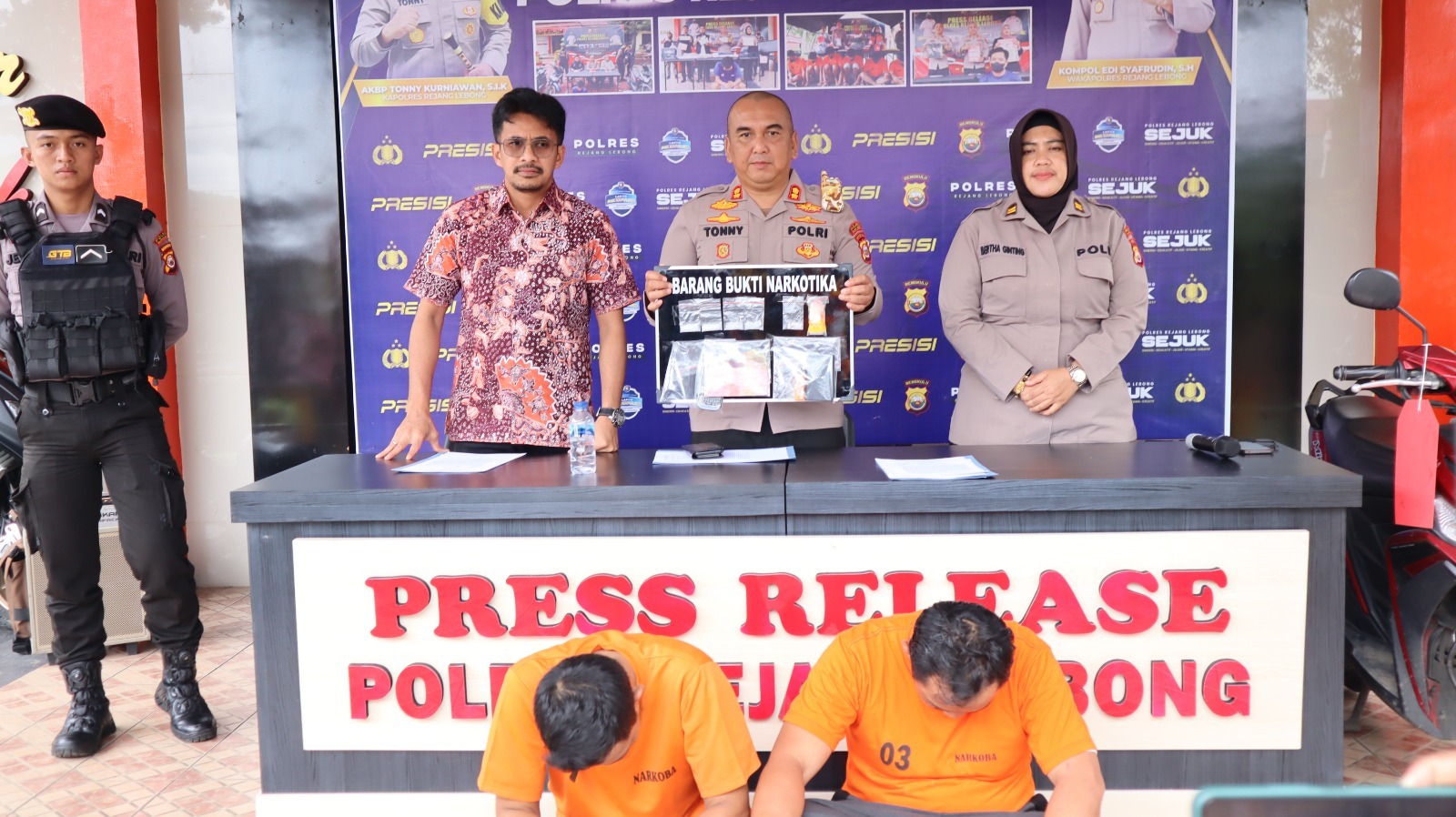 Disampaikan oleh Kapolres Rejang Lebong Polda Bengkulu AKBP Tonny Kurniawan SIK didampingi Kasat Narkoba Iptu Cahya Prasada Tuhuteru S.TrK dan Kasi Humas Iptu Bertha A Ginting saat menggelar konfrensi pers di Mapolres Rejang Lebong, Jumat (10/3/2023).