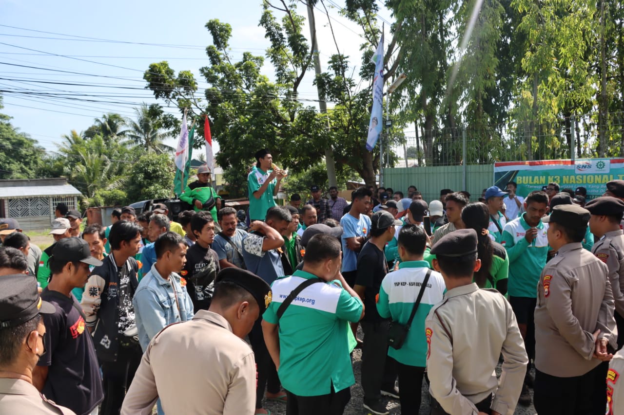 Sebelum melaksanakan pengamanan seluruh personil pengamanan unjuk rasa melaksanakan Apel kesiapan di lokasi PT Sinar Niaga Sejahtera yang dipimpin oleh Perwira Pengendali (Padal) AKP Hanan Hobby.