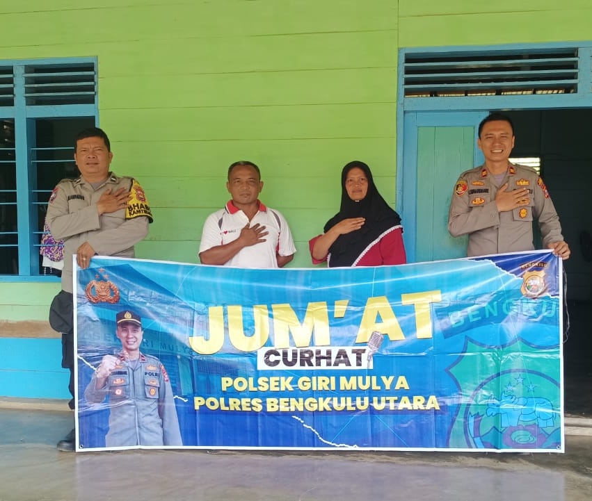 Bengkulu Utara –  Untuk menampung aspirasi masyarakat dan menciptakan situasi kamtibmas yang aman dan Kondusif Polsek Giri Mulya Polres Bengkulu Utara Polda Bengkulu melaksanakan kegiatan Jumat Curhat dengan menyambangi tokoh masyarakat di Desa Suka Makmur Kecamatan Giri Mulya, Jumat (24/03/2023).