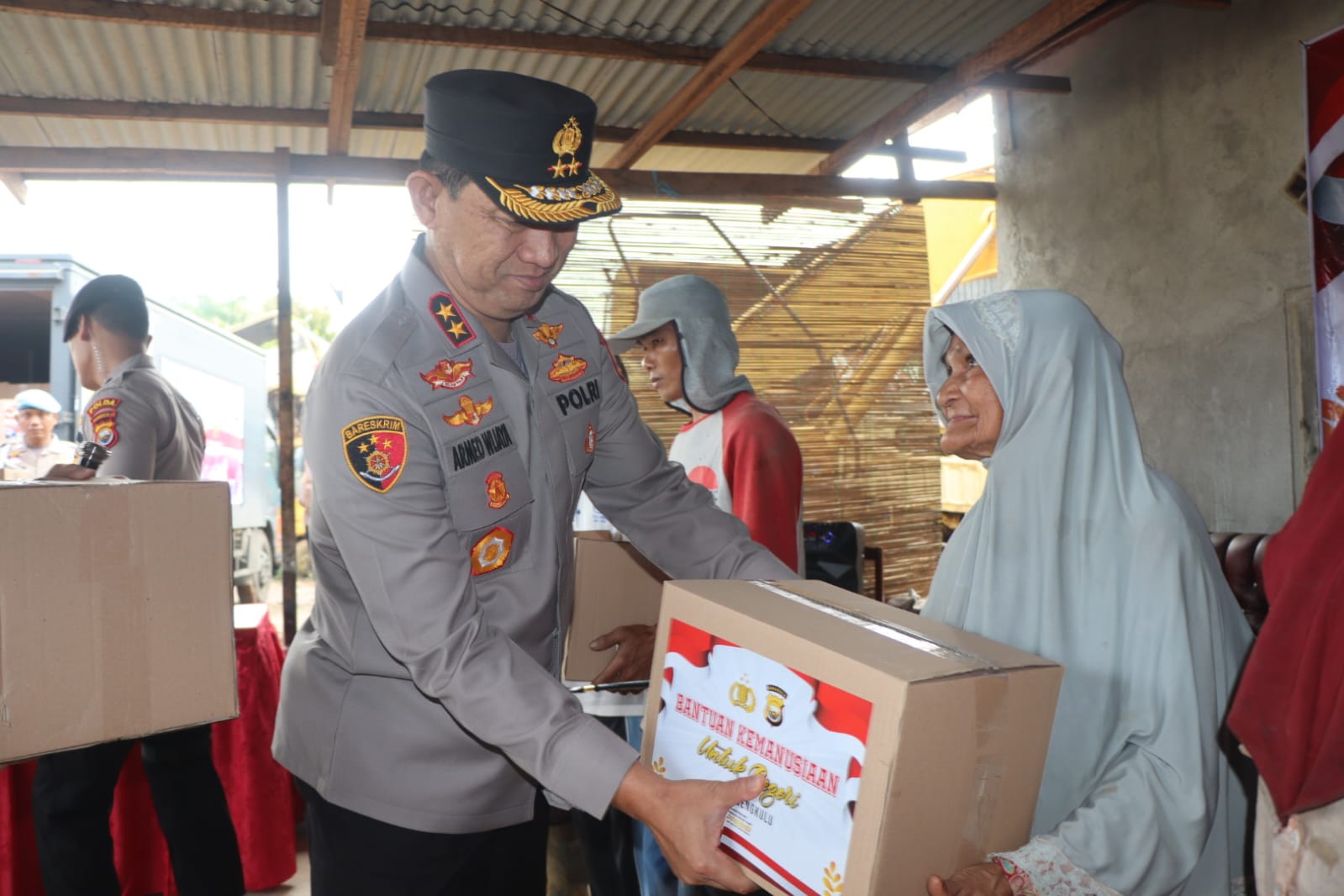 Kapolda Bengkulu Irjen Pol.Drs Armed Wijaya M.H., beserta Irwasda dan para pejabat utama Polda Bengkulu lainnya terjun langsung memberikan paket sembako sebanyak 125 paket kepada warga. Dalam sambutannya Kapolda Bengkulu mengatakan bantuan paket sembako ini bertujuan untuk membantu perekonomian masyarakat kurang mampu. Selain itu mengambil momen bulan ramadhan, Polda Bengkulu beserta jajaran mengajak masyarakat lainnya yang memiliki kemampuan dari segi finansial untuk ikut membantu warga khususnya dilingkungan tempat tinggal.