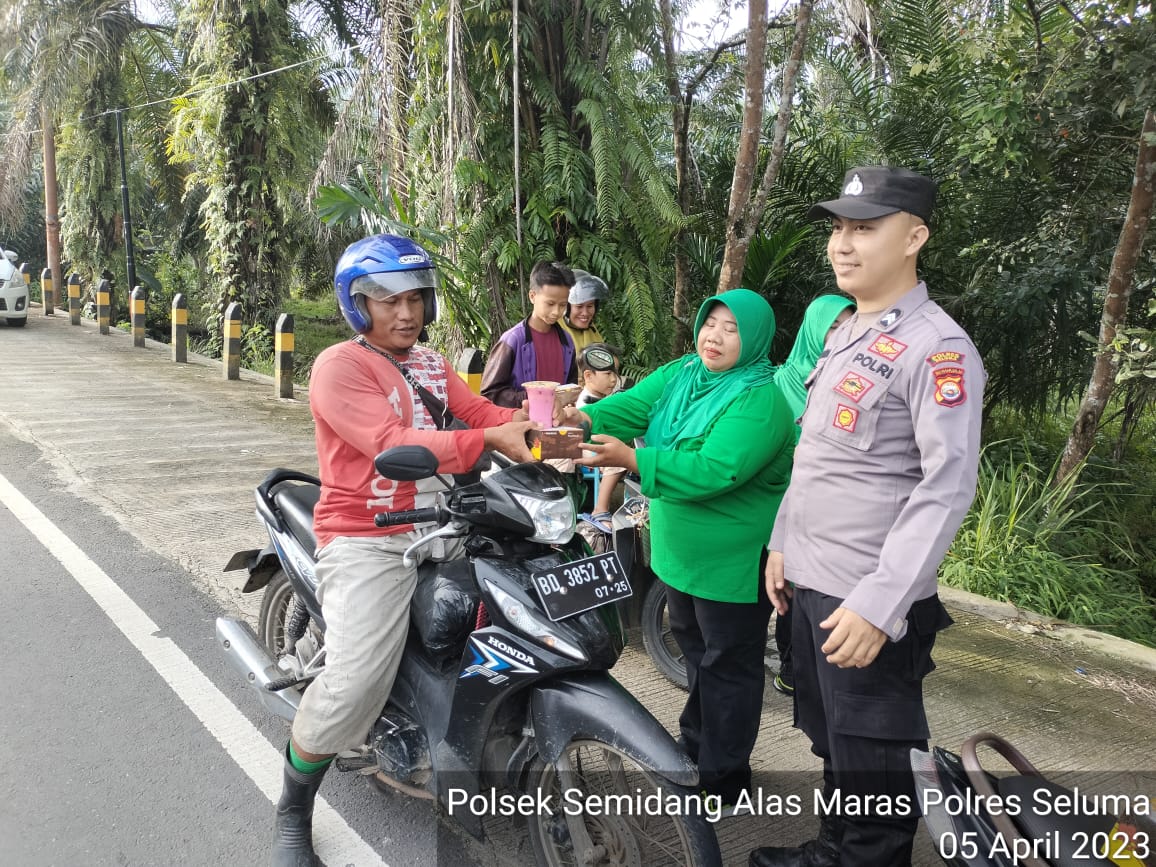 Kegiatan tersebut berupa giat Anggota Polsek Semidang Alas Maras membantu kegiatan pembagian takjil untuk masyarakat yang di laksanakan oleh Personel Koramil 425-04 Semidang Alas Maras, kegiatan tersebut di laksanakan untuk memeriahkan bulan suci Ramadan 1444 Hijriah.