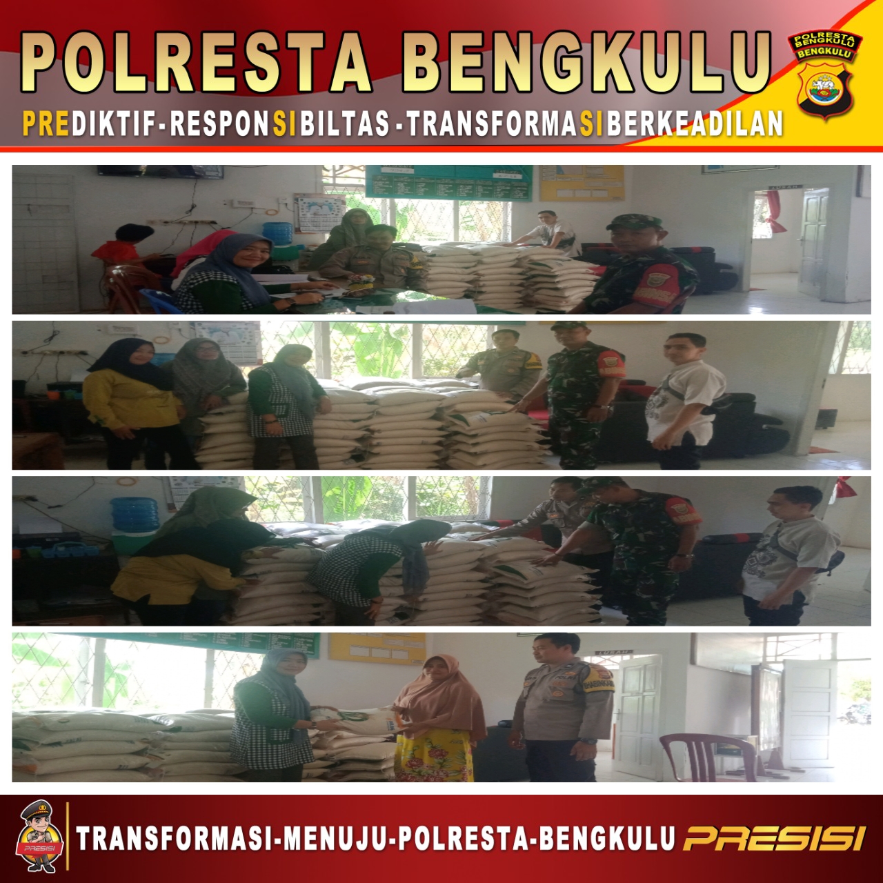 Kegiatan Pengamanan Distribusi Bantuan Pangan Cadangan Beras Pemerintah tahun 2023 Provinsi Bengkulu di wilayah Kecamatan Muara Bangkahulu Kota Bengkulu berlangsung aman lancar dan kondusif.