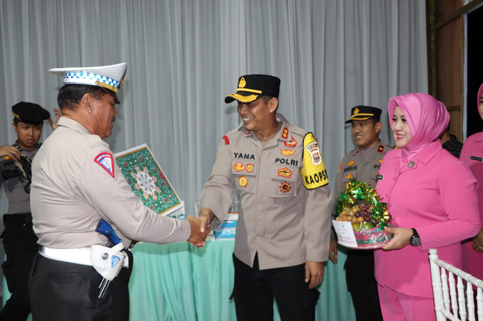 Kepahiang – Sebagai wujud kepedulian Polres Kepahiang Polda Bengkulu terhadap petugas di Pos Pengamanan Kapolres Kepahiang AKBP Yana Supriatna, S.I.K.,M.Si beserta Ketua Bhayangkari Cabang Kepahiang Ny.Diah Yana Supriatna dan PJU Polres Kepahiang mengecek kesiapsiagaan personel dan memberikan bingkisan kepada personel yang melaksanakan pengamanan di Pospam dan Posyan, Selasa (18/04/2023) Pukul 19.30 Wib.