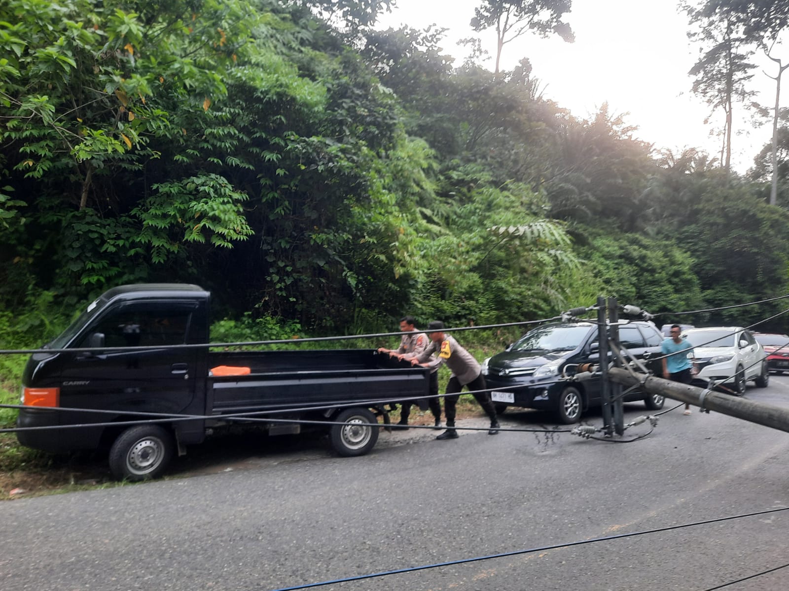 Lanjut Kapolsek, situasi arus lalu lintas di lokasi aman terkendali, dan petugas PLN telah melakukan evakuasi tiang listrik yang tumbang.