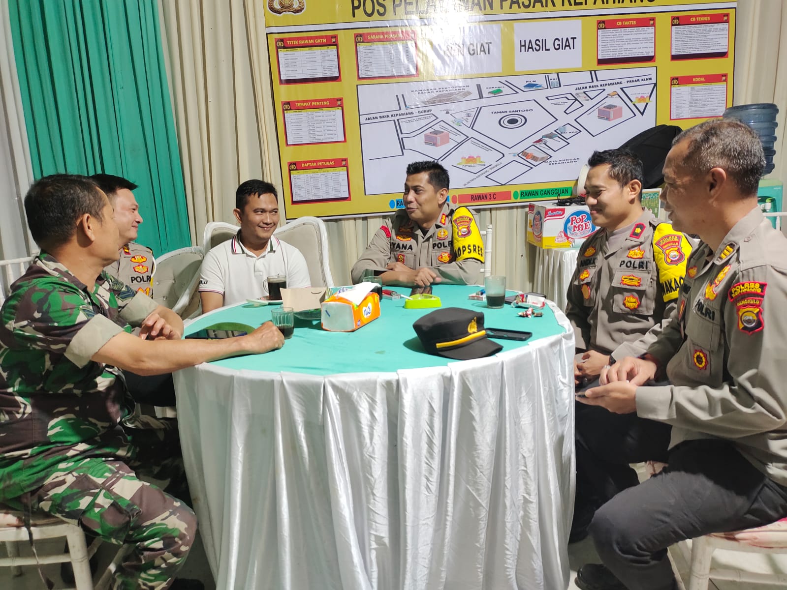 Kepahiang – Pantau kesiapan Personel Gabungan yang bertugas di Pos Pelayanan (Posyan), Kapolres Kepahiang Polda Bengkulu AKBP Yana Supriatna S.IK, M.Si, pada Kamis (20/04/2023) kunjungi Posyan Pasar Kepahiang.
