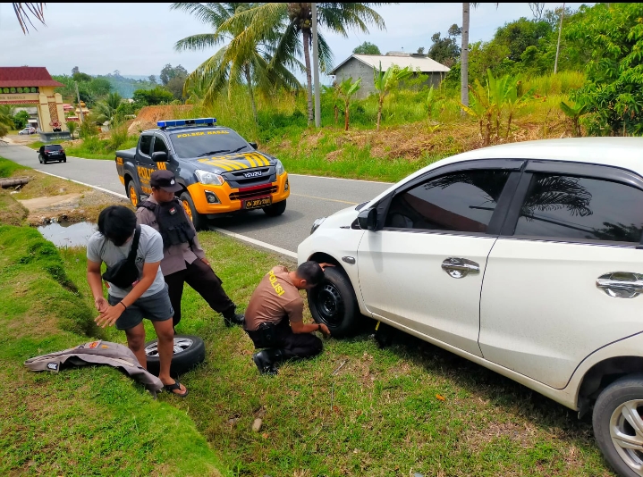 Pemudik Pecah Ban, Personel Polsek Nasal Datang Membantu