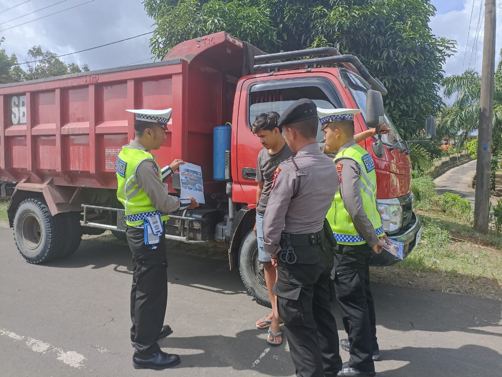 Petugas memberikan imbauan kepada para pengendara kendaraan bermotor secara hunting di jalan umum Wilayah hukum Polres Bengkulu utara tentang tertib berlalu lintas jalan, Pembagian brosur dan juga informasi terkait dengan perpanjangan pemutihan pajak kendaraan bermotor