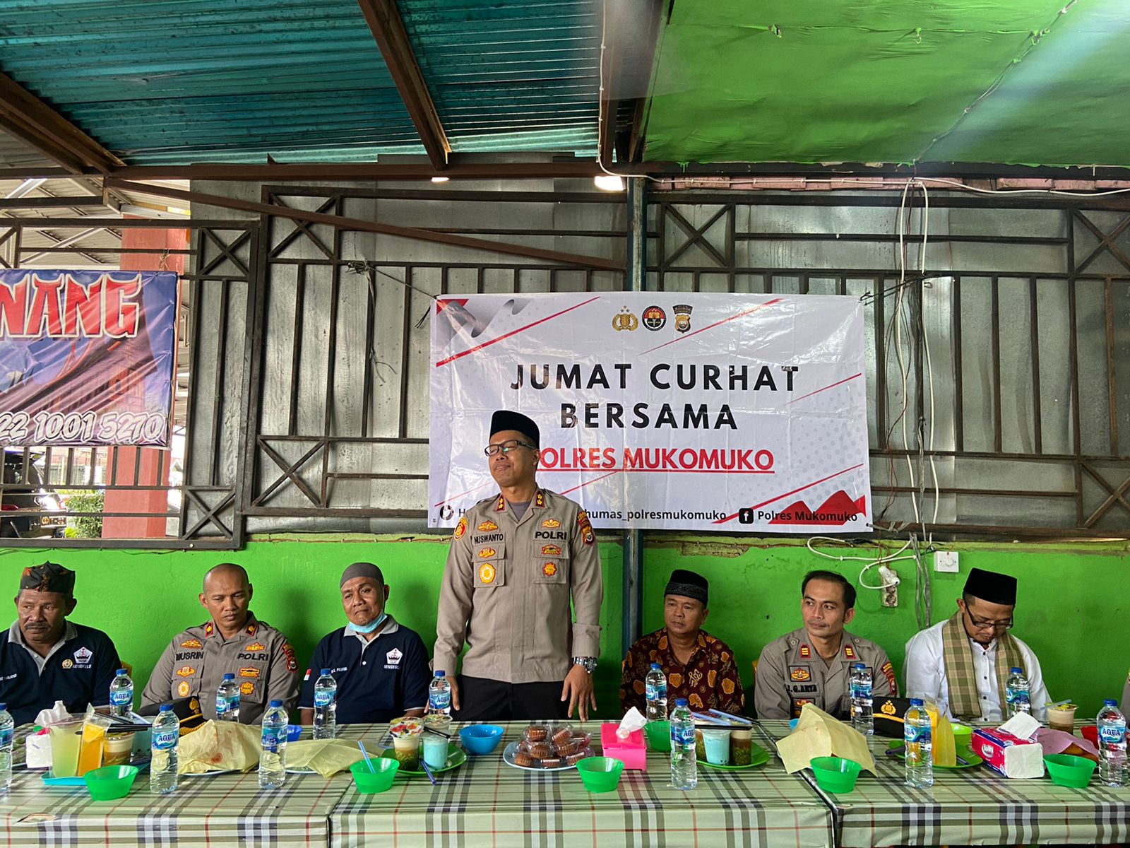 Mukomuko – Polres Mukomuko Polda Bengkulu, menggelar program Jumat Curhat di Kecamatan Lubuk Pinang Kabupaten Mukomuko, Jumat (12/5/2023). Program ini juga menjadi silaturahmi dan komunikasi antara Polri dengan masyarakat.