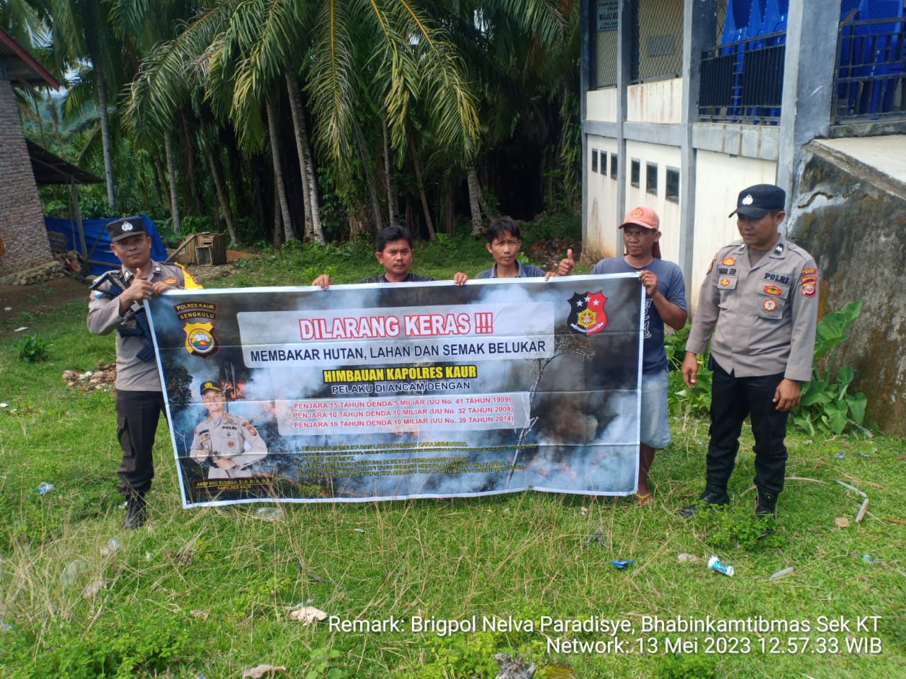 Kaur – Sabtu (13/05/2023) sekira Pukul 12.50 WiB Polsek Kaur Tengah Polres Kaur Polda Bengkulu, melaksanakan Sosialisasi larangan Pembakaran Hutan dan Lahan (Karhutlah) serta semak belukar di Desa Cahaya Negeri Kecamatan Luas Kabupaten Kaur.