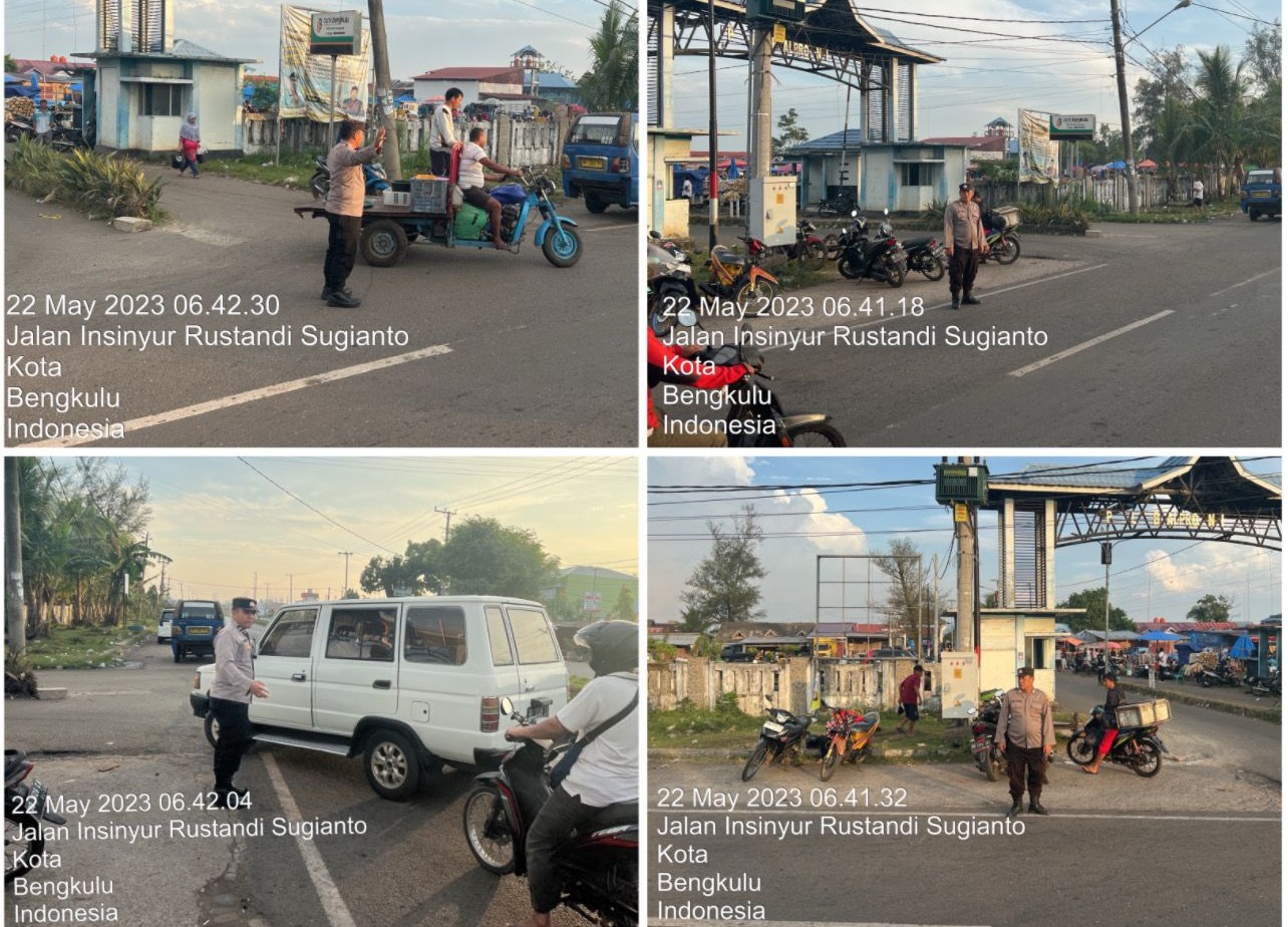 Bengkulu – Polsek KSKP Pulau Baai Polresta Bengkulu Polda Bengkulu melaksanakan Commander Wish Pengamanan Dan Pengaturan Pagi di wilayah hukum Polsek KSKP Pulau Baai, Senin (22/5/2023).