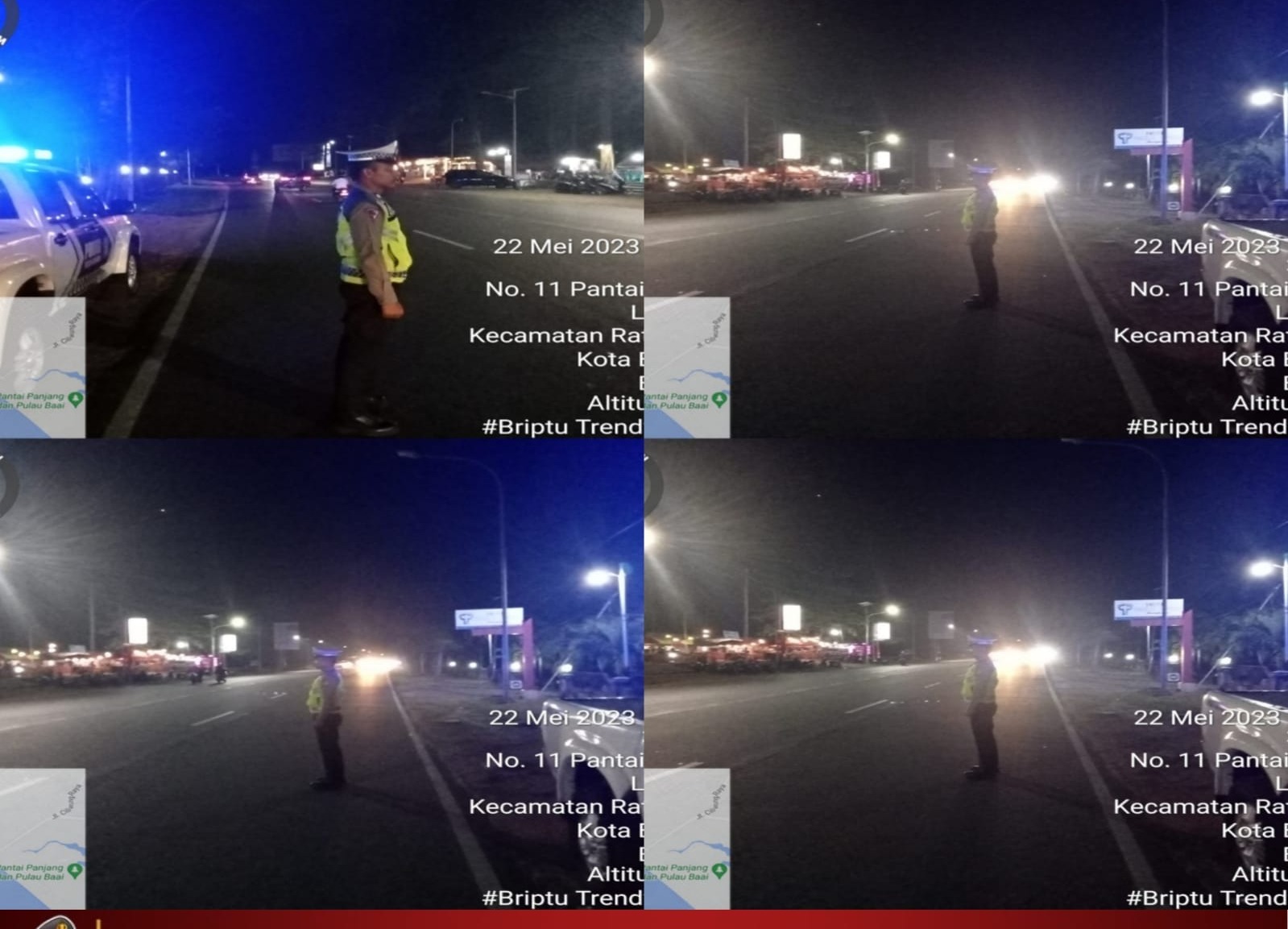 Bengkulu – Dalam upaya mencegah tindak pidana 3C (Curat, Curanmor dan Curas), Satlantas Polresta Bengkulu Polda Bengkulu, melaksanakan patroli diseputaran Jalan Pariwisata Kota Bengkulu (Pantai Panjang), Senin (22/5/2023) malam.