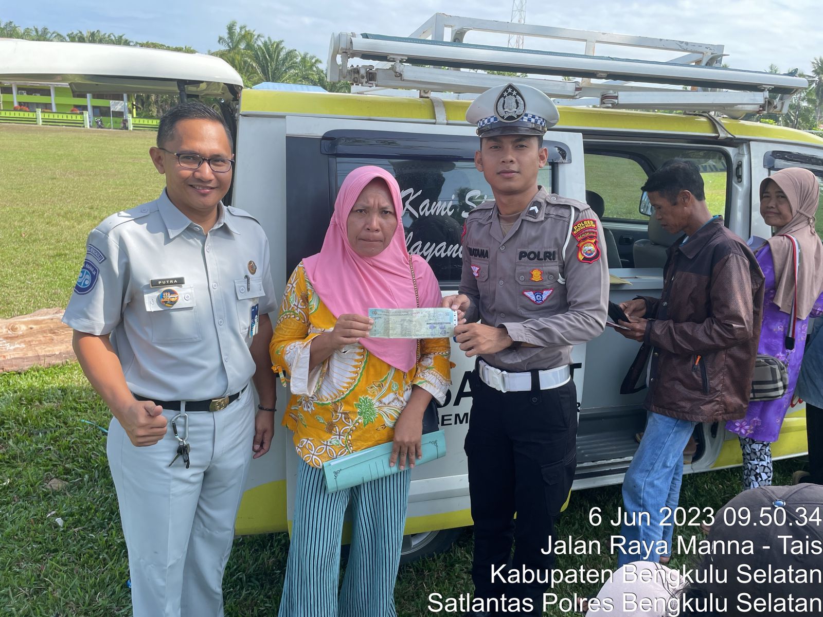 Bengkulu Selatan, – Personel Polres Bengkulu Selatan Polda Bengkulu Bripda wiratama like.F., bersama petugas Jasa Raharja dan UPTD Samsat lainya melaksanakan pelayanan Samsat keliling di wilayah Kecamatan Pino Raya  Kabupaten Bengkulu Selatan, Selasa (06/06/23) pagi.