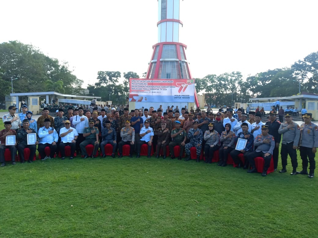 Bengkulu – Dir Binmas Polda Bengkulu Kombes Pol Drs. Herman, MM., pagi hari ini Rabu (21/06) menghadiri kegiatan Apel Kasat Kamling Polda Bengkulu dan penyerahan hadiah pemenang lomba Pos Kamling tingkat Polresta Bengkulu dalam rangka HUT Bhayangkara Ke-77 Tahun 2023 yang berlangsung di Lapangan Merdeka Kota Bengkulu dan berlangsung serentak seluruh Indonesia.