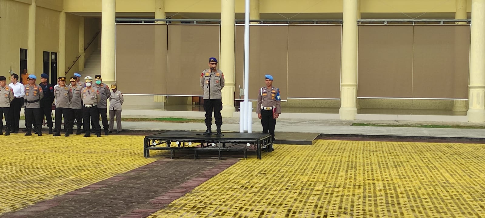 Bengkulu – Memimpin kegiatan apel pagi hari ini Senin (26/06/2023), Dir Polair Polda Bengkulu Kombes Pol Erick Sartani Marbun, S.I.K., mengajak seluruh Personel dan ASN (Aparatur Sipil Negeri) Polri Polda Bengkulu untuk turut serta menyukseskan seluruh rangkaian kegiatan yang digelar dalam rangka menyambut Hari Bhayangkara ke-77 tahun 2023.