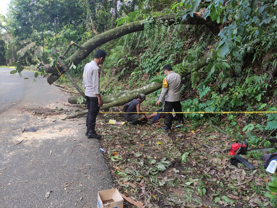 Bengkulu Utara – Pasca terjadinya hujan lebat yang mengakibatkan adanya tanah longsor beberapa hari yang lalu dan adanya pohon tumbang yang mengarah ke badan jalan tepatnya di Desa Sawang Lebar Ilir Kecamatan Tanjung Agung Palik Kabupaten Bengkulu Utara.