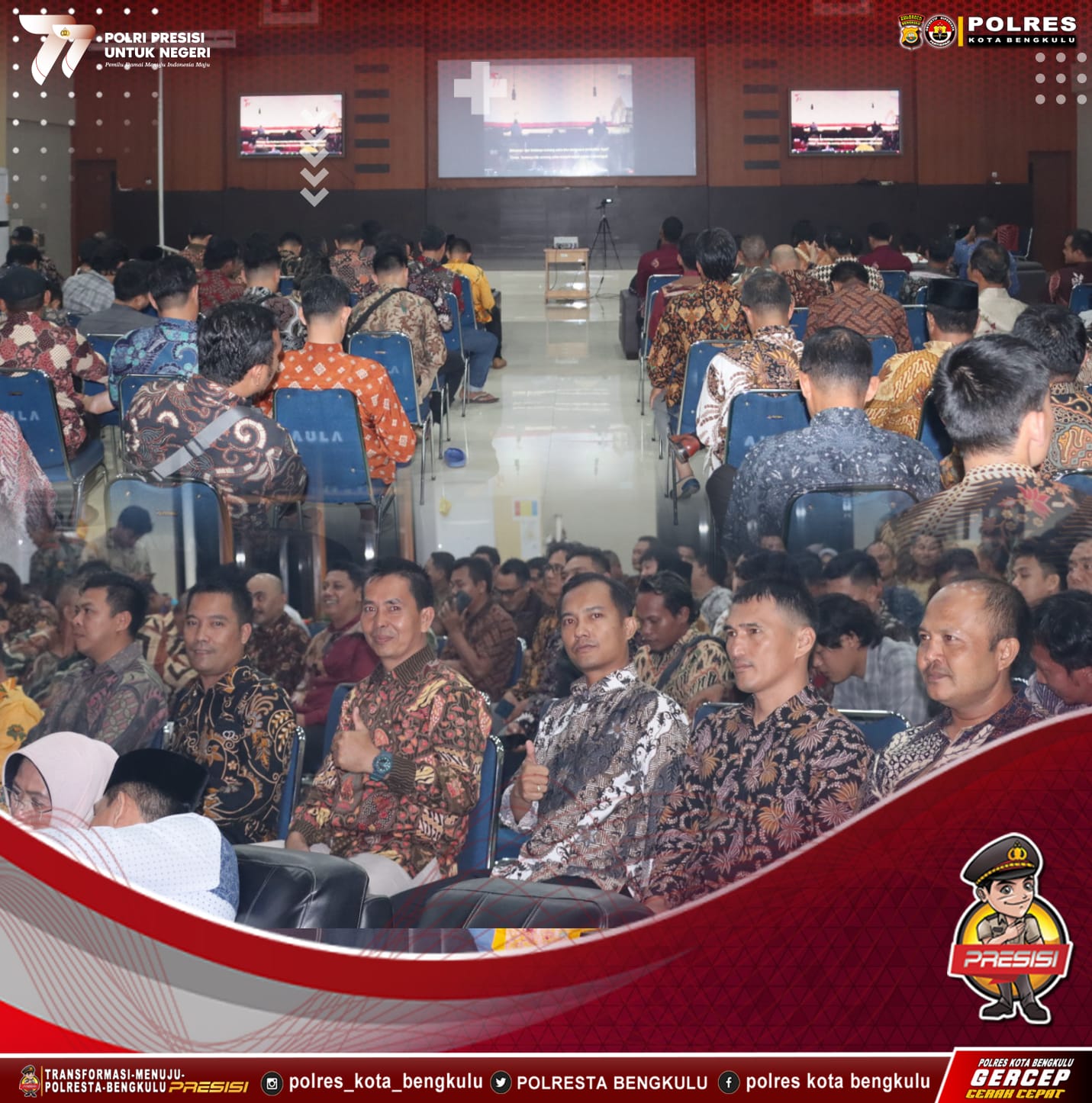Agar dapat disaksikan oleh semua kalangan, Polresta Bengkulu dipimpin langsung Kapolresta Bengkulu Kombes Pol. Aris Sulistyoni,S.H.,M.H. turut menggelar acara nonton bareng di Aula Endra Dharmalaksana Polresta Bengkulu, Jumat (7/7/23).