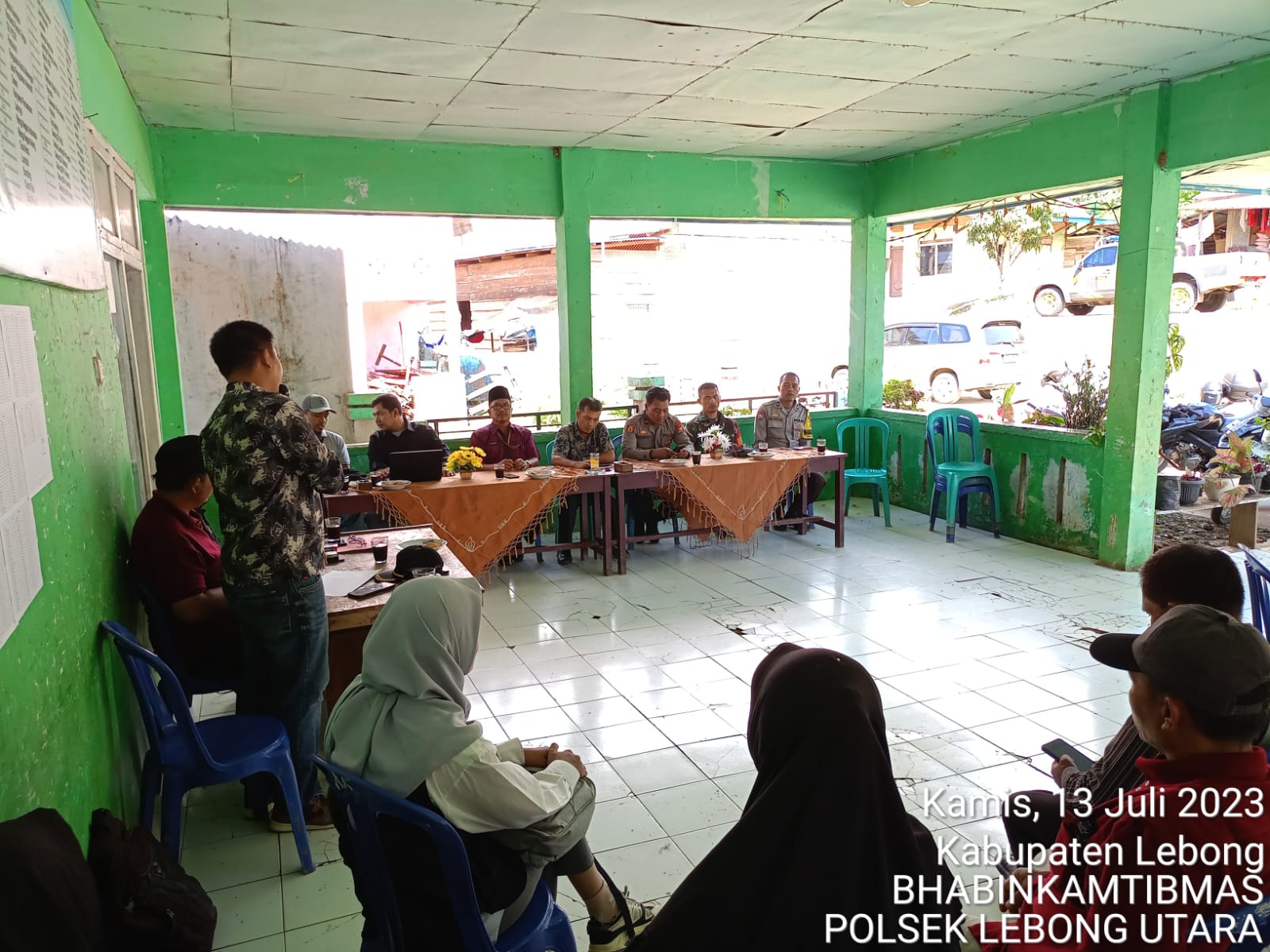 Lebong – Bhabinkamtibmas Polsek Lebong Utara, Polres Lebong Polda Bengkulu, Aipda Joko Haryono, menghadiri kegiatan Monitoring dan Evaluasi (Monev) Pembangunan Jalan Usaha Tani, di Desa Air Kopras Kecamatan Pinang Belapis Kabupaten Lebong, Kamis (13/7/2023).