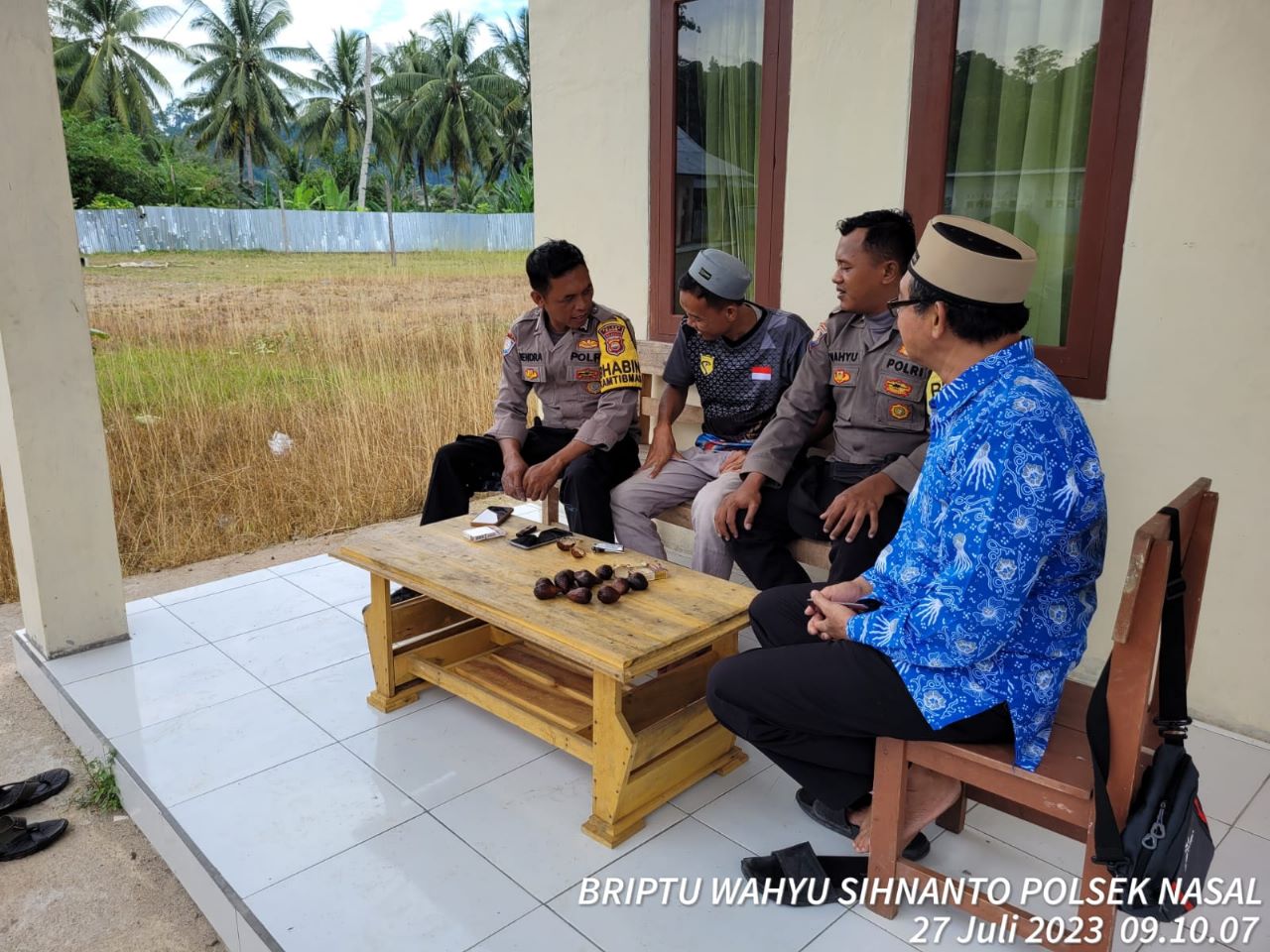 Kaur -Guna menjalin silahturahmi, Bhabinkamtibmas Polsek Nasal Polres Kaur Polda Bengkulu, Bripka Hendra Romansyah dan Briptu Wahyu Sihnanto sambangi Tokoh Agama di Desa Ulak Pandan Kecamatan Nasal Kabupaten Kaur, Kamis, (27/07/2023), Pukul 09.00 WIB s/d Selesai.