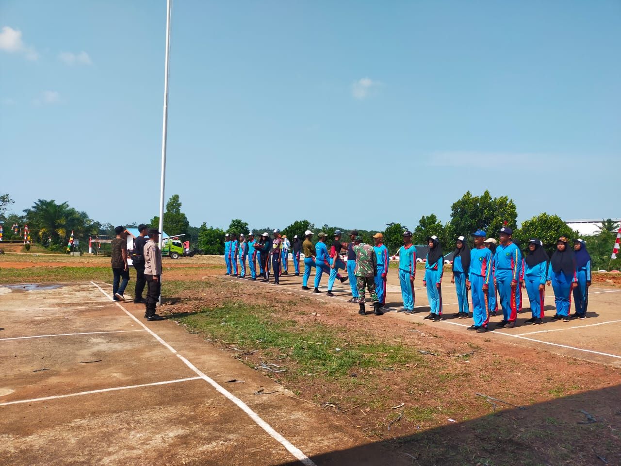“Materi yang diberikan berupa peraturan dasar baris berbaris. Tujuannya agar tercipta kesamaan gerak dan langkah. Kemudian pengibaran bendera dan penurunan bendera,” ungkap Aipda Respon Sory.