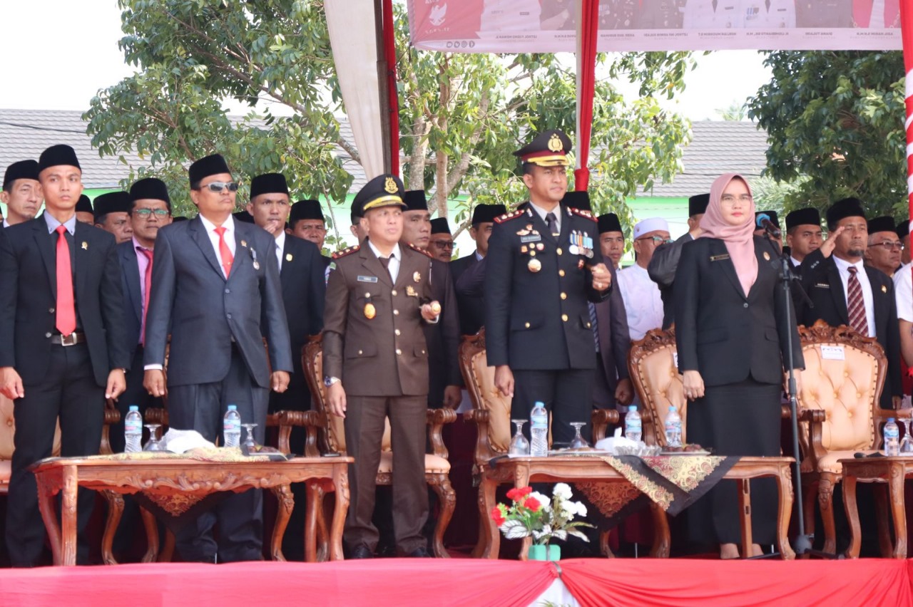 Kaur – Kepala Kepolisian Resor Kaur Polda Bengkulu, AKBP Eko Budiman, S.I.K., M.IK., MH., turut menghadiri Upacara Peringatan HUT Kemerdekaan RI ke-78 Tingkat Kabupaten Kaur, Kamis (17/8/23) Pukul 08.30 WIB, di Halaman Kantor Pemda setempat.