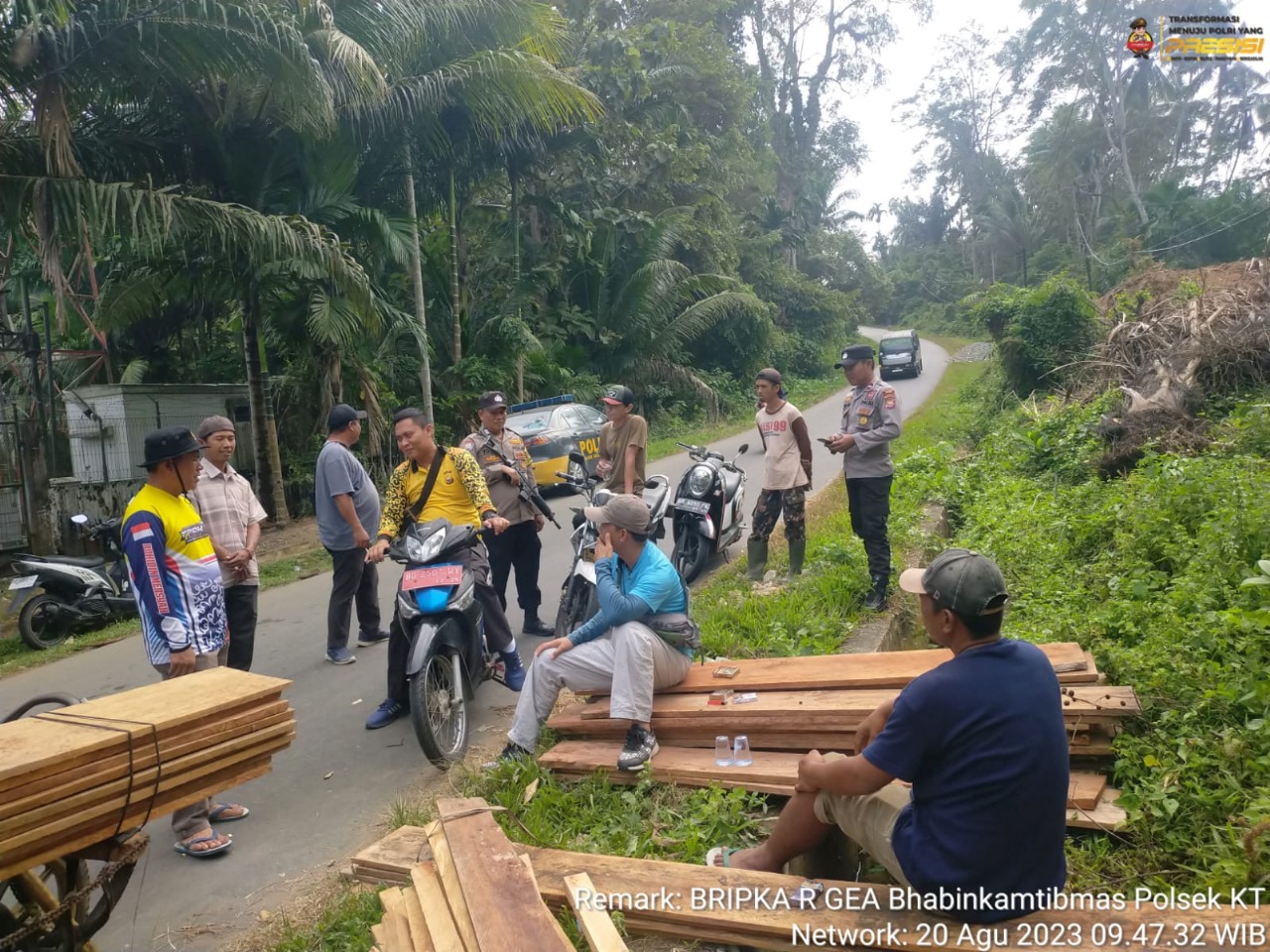 Kaur – Polsek Kaur Tengah Polres Kaur Polda Bengkulu, melaksanakan gotong royong memperbaiki jembatan sebagai jalan sentra produksi pertanian di Desa Benua Ratu Kecamatan Luas Kabupaten Kaur Pada hari ini Minggu, (20/08/2023) Sekira Pukul 09.00 WIB.