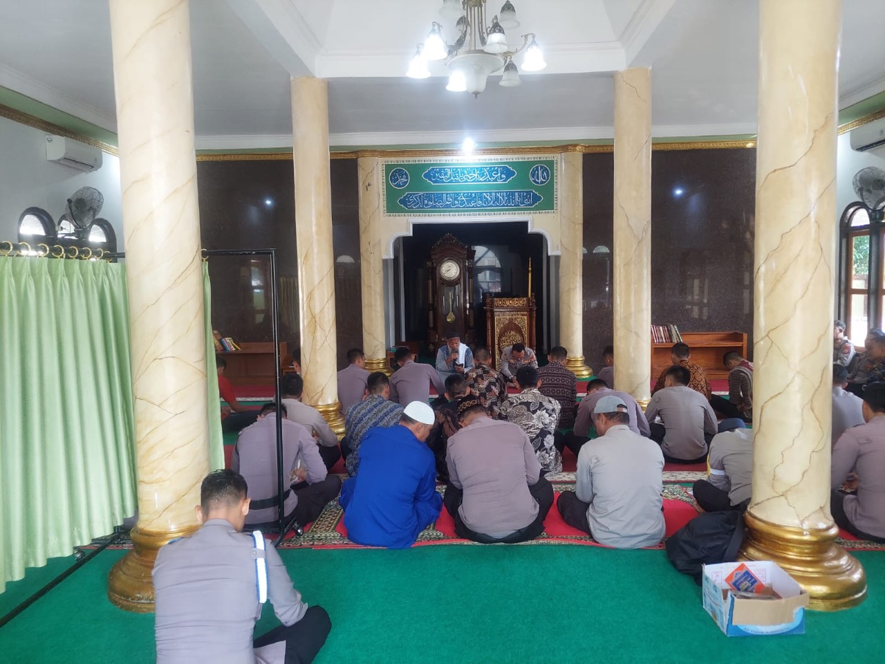 Kaur – Personel Polres Kaur Polda Bengkulu, melaksanakan Bimbingan Rohani dan Mental (Binrohtal) dengan membaca Yasin bersama di Masjid Baiturrahman Polres Kaur, Kamis (24/07/2023) Pukul 08.00 Wib s/d Selesai.