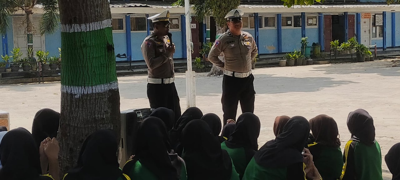 Ditambahkan Personel Sat Lantas Kegiatan Sosialisasi berjalan dengan aman dan Kondusif, siswa dan guru memahami serta menerima apa yang disampaikan oleh Personel Sat Lantas.