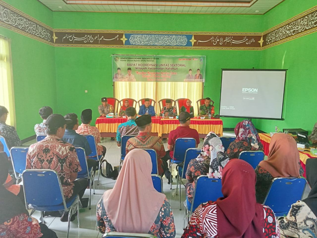 Bengkulu Utara – Bhabinkamtibmas Polsek Ketahun mewakili Kapolsek Ketahun, Aipda Andi Marwanto menghadiri rapat Koordinasi Lintas Program Lintas Sektoral tentang kesehatan masyarakat desa, di Aula Kantor KUA Kecamatan Ketahun Kabupaten Bengkulu Utara, Kamis (26/10/2023).