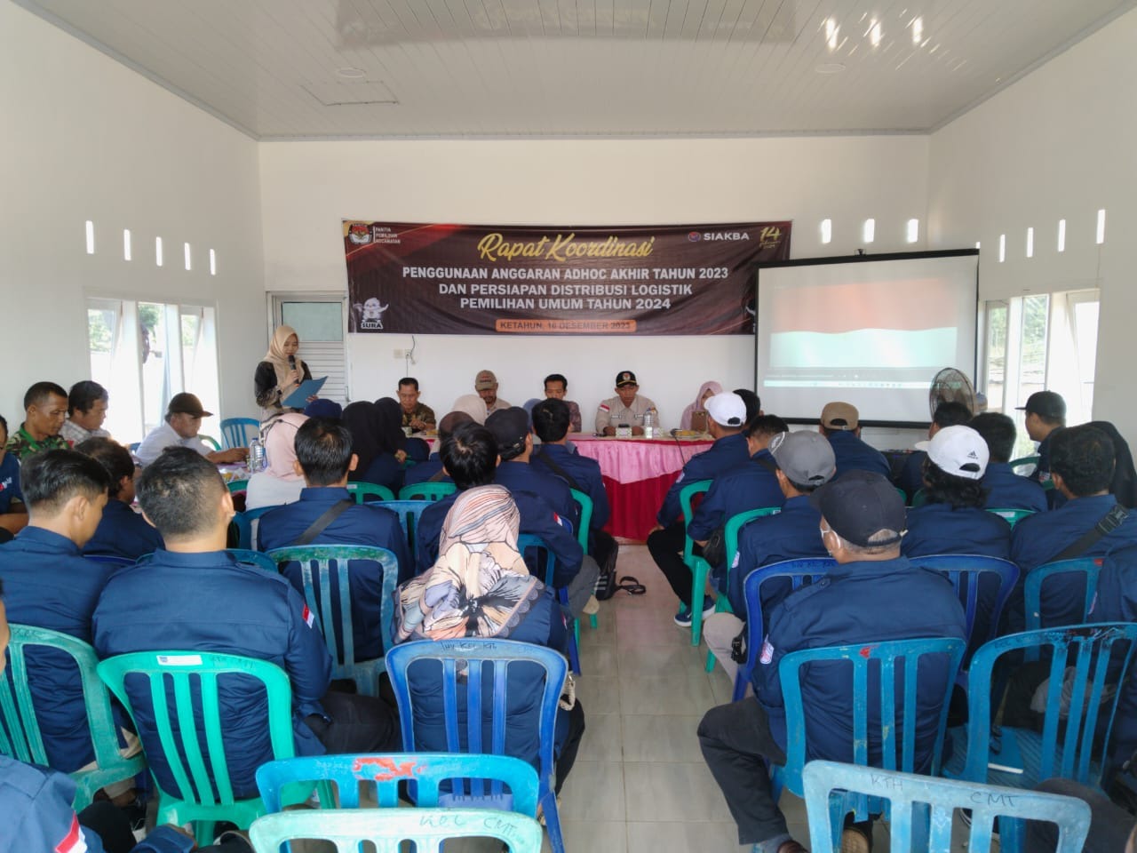 Bengkulu Utara – Kanit Intelkam Polsek Ketahun Polres Bengkulu Utara Polda Bengkulu, Aiptu Dwi Saputro, menghadiri undangan rapat koordinasi penggunaan anggaran Adhoc akhir Tahun 2023 dan pensistribusian logistik untuk Pemilu 2024 di Balai Kantor Camat Ketahun pada pagi, Sabtu (16/12/2023).