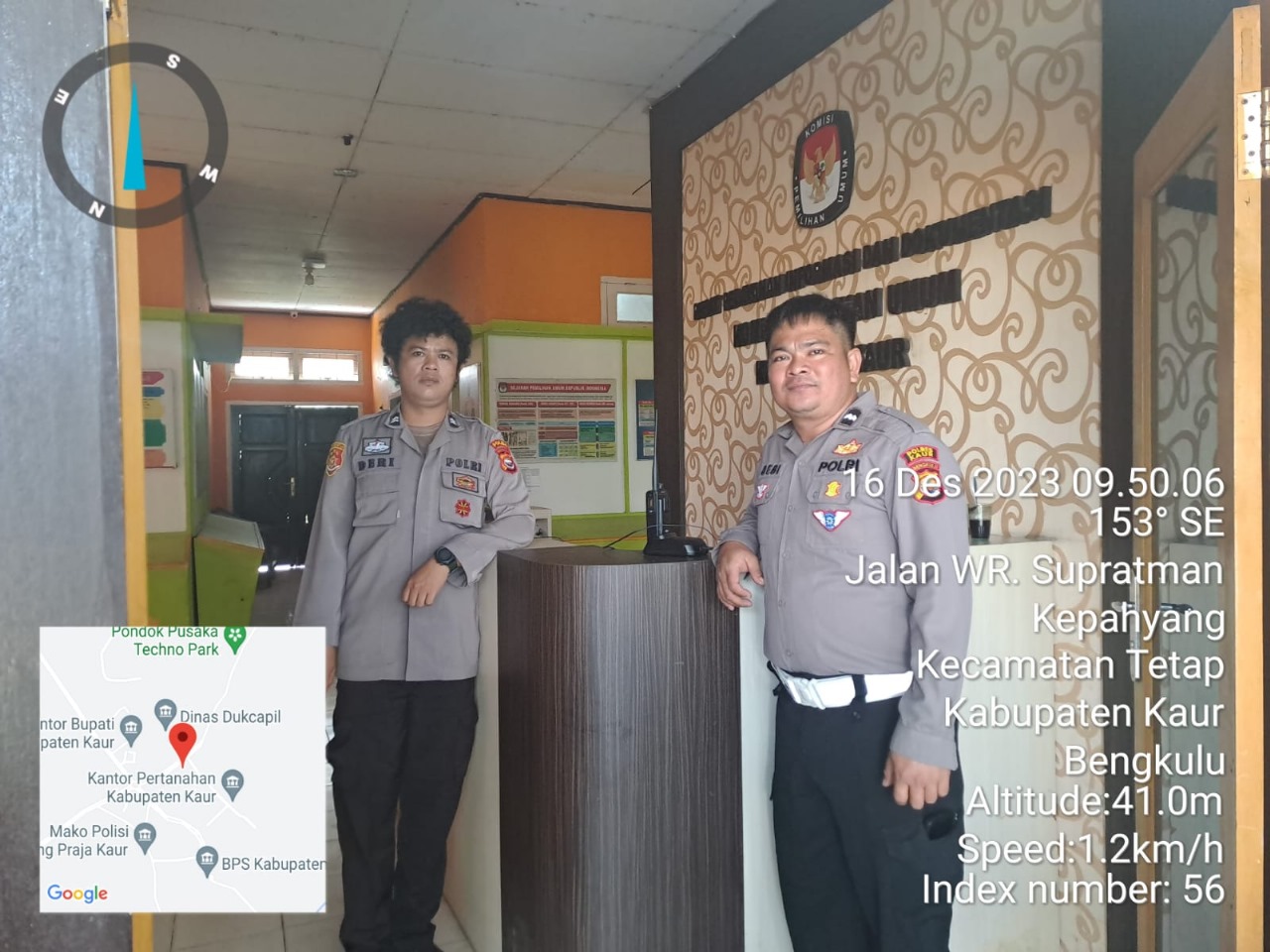 Kaur – Jelang Pelaksanaan Pemilu 2024, Personel Operasi Mantap Brata (OMB) Nala Polres Kaur Polda Bengkulu, melakukan kegiatan sistem pengamanan secara berkala di Kantor Bawaslu Kabupaten Kaur Sabtu (16/12/2023) Pukul 08.00 WIB s/d 08.00 WIB.