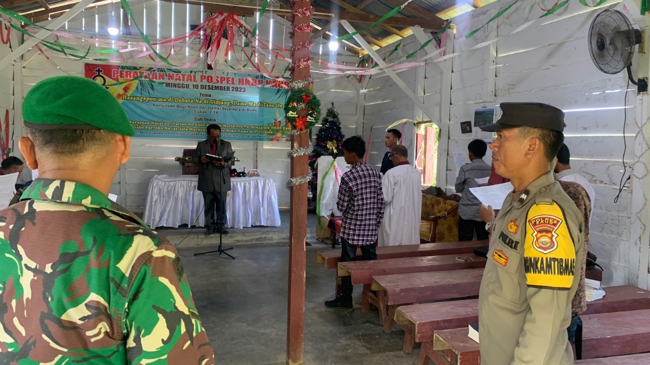 Kaur – Personel Polsek Kaur Selatan Polres Kaur Polda Bengkulu, melaksanakan pengamanan ibadah Gereja Umat Kristiani di Postel HKBP Pondok Pusaka di Desa Padang Petron Kecamatan Kaur Selatan Kabupaten Kaur, Senin, (01/01/2024), Pukul 11.00 Wib s/d Selesai.