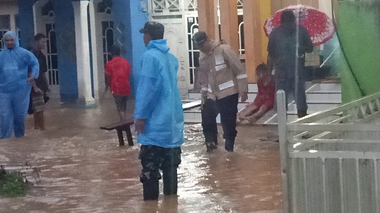 Kapolsek Ketahun Turun Langsung Monitor Banjir di Perumnas Desa Giri Kencana