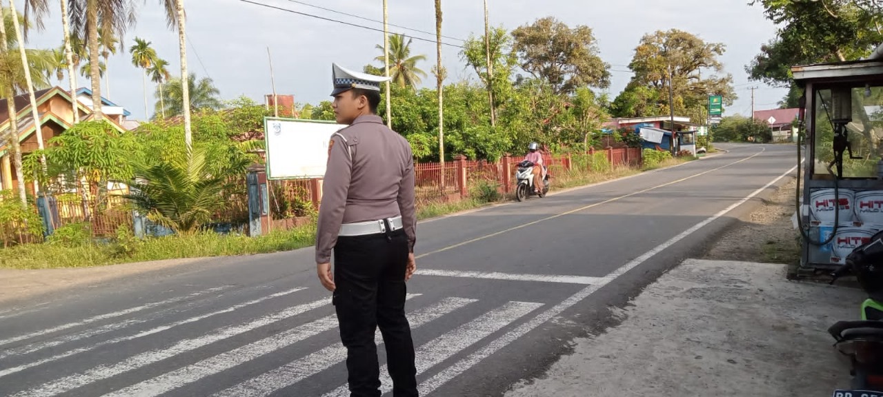 Bengkulu Utara – Personel Lantas Polsek Ketahun Polres Bengkulu Utara Pola Bengkulu, melaksanakan kegiatan pengamanan pagi/Comander Wish disimpang persimpangan dan sekolah yang ada di Wilkum Polsek Ketahun, Jumat (05/01/2024) pagi.