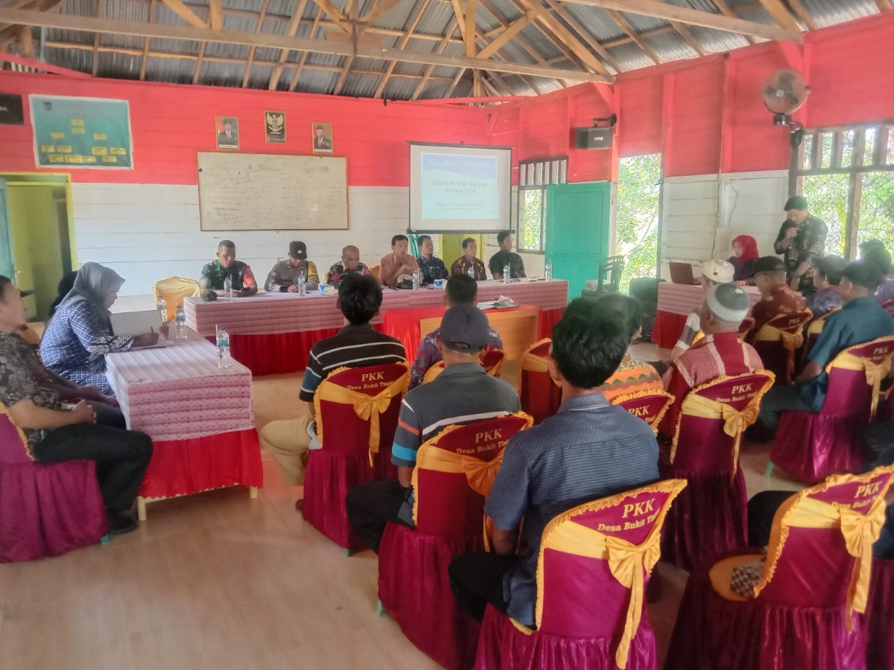Bengkulu Utara – Bhabinkamtibmas Polsek Ketahun Polres Bengkulu Utara Polda Bengkulu, Aipda Andi Marwanto menghadiri pelaksanaan kegiatan undangan serah terima jabatan kepala desa Bukit Tinggi di kantor Desa Bukit Tinggi Kecamatan Ketahun Kabupaten Bengkulu Utara, Kamis (11/01/2024).