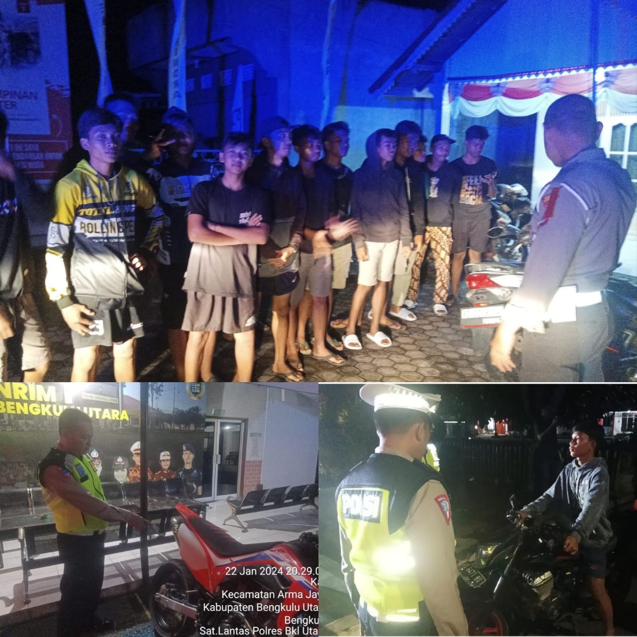 Personel Lantas Polres Bengkulu Utara Patroli Cegah Balap Liar dan Larangan Gunakan Knalpot Brong