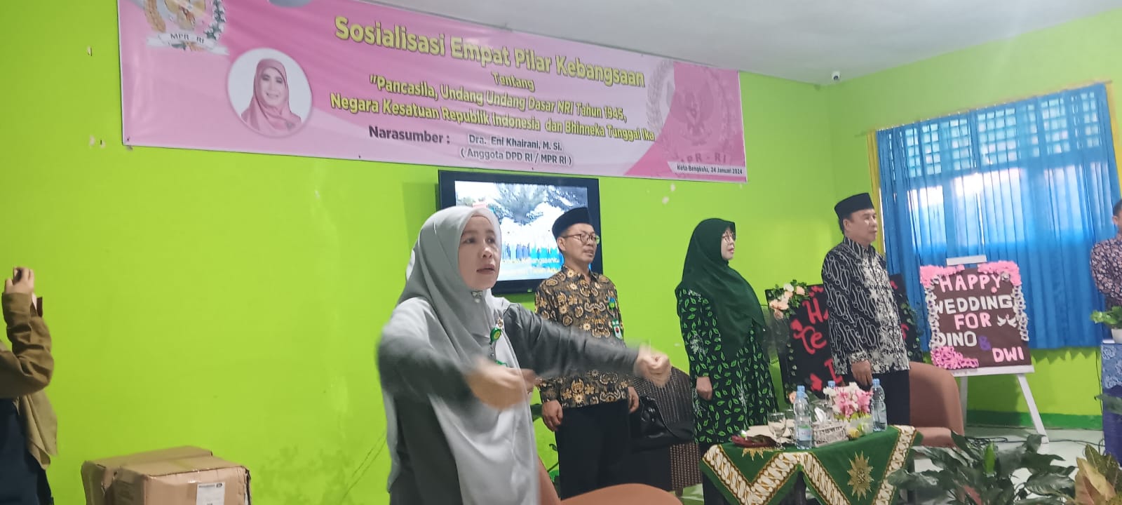 Eni melanjutkan, “Sosialisasi empat pilar MPR RI merupakan agenda tahunan yang kompleks yang biasa dilaksanakan untuk mensosialisasikan nilai – nilai Pancasila kepada masyarakat. Menurut Eni sosialisasi empat pilar ini diharapkan bukan hanya kegiatan formalitas dan seremonial belaka, namun lebih dari itu ia berharap keterlibatan anak muda dapat memberi nilai lebih terhadap Upaya sosialisasi”.