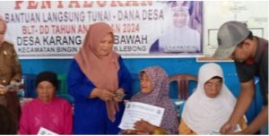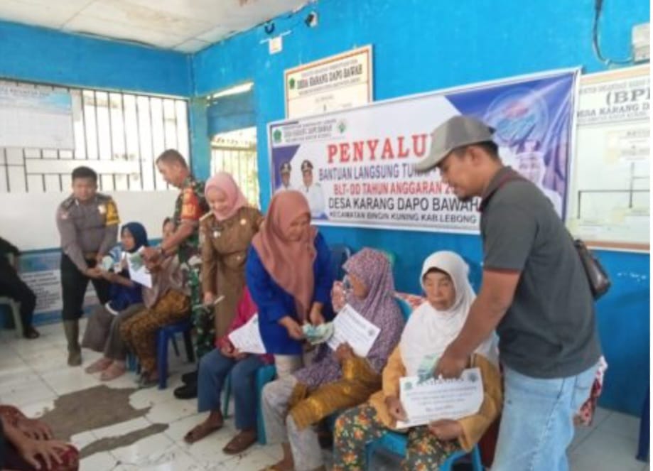 “Untuk Desa Karang Dapo Bawah pembagian BLT-DD di triwulan ke-1 di tahun 2024 sudah masuk kata gori, data ini sudah kita sinkronkan dengan data untuk kemiskinan extrem, pembagian BLT-DD diberi secara tunai dan tidak ada potongan sedikitpun,” ujar PJs Kades EKA PATRIA.