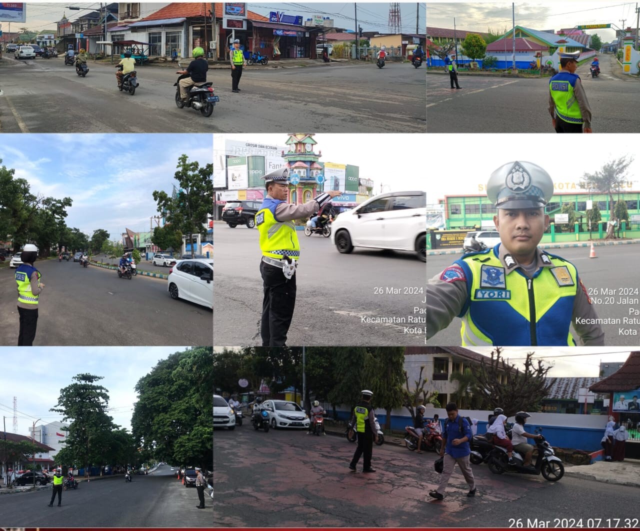 Bengkulu – Guna memberikan kelancaran serta ketertiban lalu lintas di pagi hari, Personel Sat Latas Polresta Bengkulu dan Polsek Jajaran melaksanakan kegiatan Commander Wish (Strong Point) di persimpangan dan lokasi rawan macet, diwilayah hukum Polresta Bengkulu, Selasa (26/03/2024) pagi.