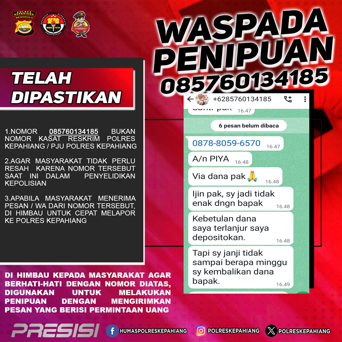 Kasat Reskrim Polres Kepahiang Ingatkan Waspada Penipuan Mengatasnamakan Kasat Reskrim